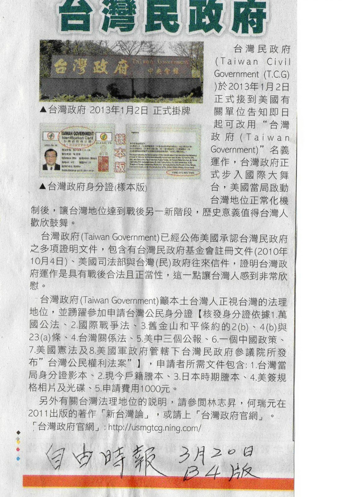 ( 台 灣 政 府 )